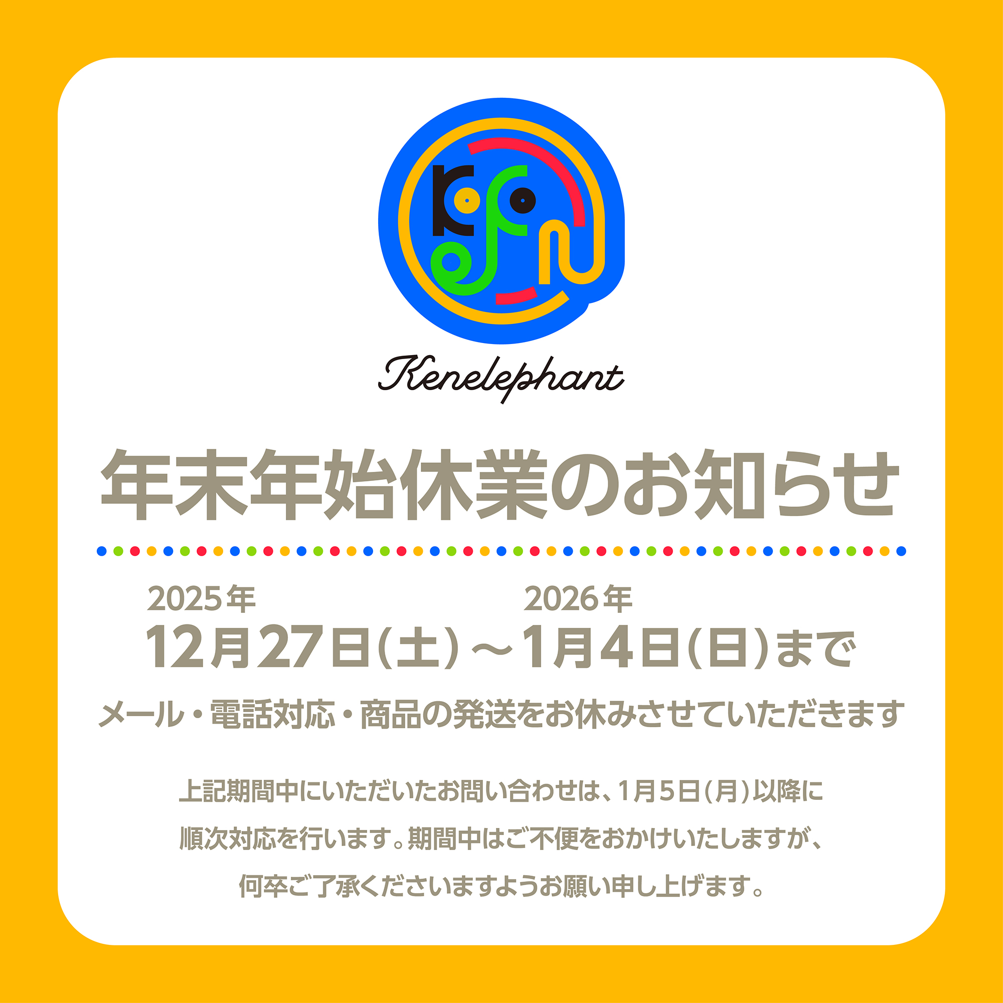 2025年12月27日(土)〜2026年1月4日(日)まで、メール・電話対応・商品の発送をお休みさせていただきます。