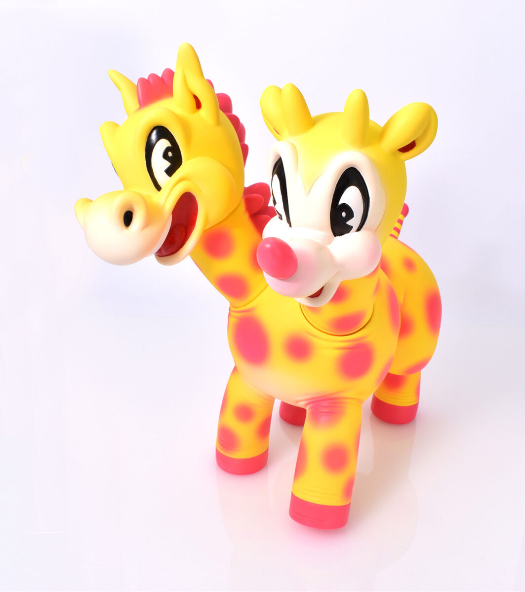 VINYLで開催されたKamerian.氏の個展「FLASH」で初お披露目されたソフビ作品「ウマシカ」。